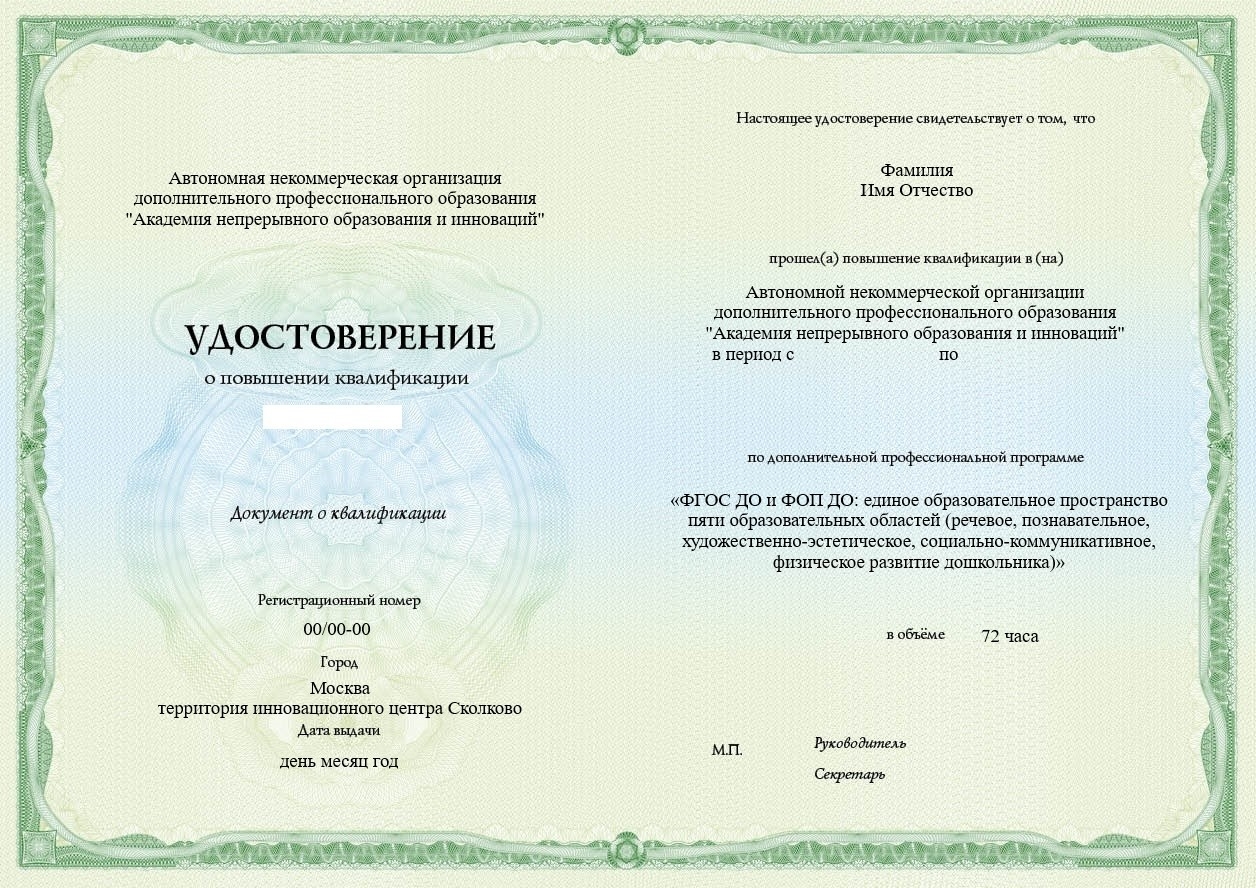 АИПК-102.3 ФГОС ДО и ФОП ДО: единое образовательное пространство пяти образовательных областей (речевое, познавательное, художественно-эстетическое, социально-коммуникативное, физическое развитие дошкольника) 72 ч.