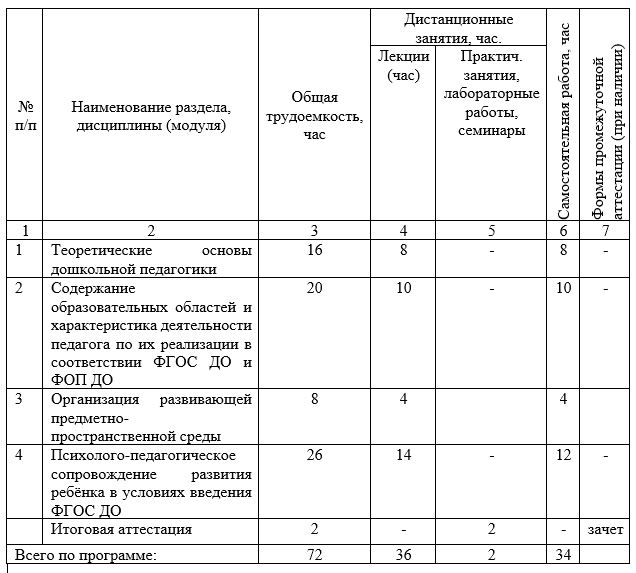 Цель программы: совершенствование профессиональных компетенций педагогов образовательных организаций дошкольного образования в части организации всестороннего развития дошкольников в соответствии с содержанием пяти образовательных областей ФГОС ДО и развития предметно-пространственной среды в соответствии с требованиями ФОП ДО.