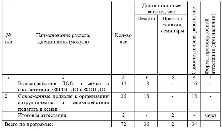 В программе повышения квалификации рассматриваются нормативно-правовые основы организации взаимодействия дошкольной образовательной организации (ДОО) с семьей, теория и практика содействия и сотрудничества воспитывающих взрослых, формы и методы совместной деятельности.