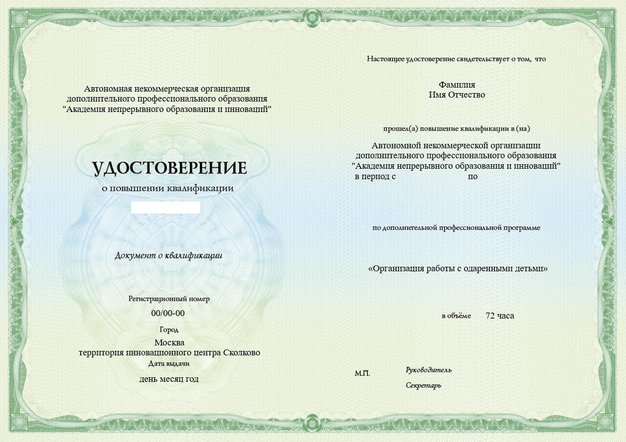 АИПК-304.8 Организация работы с одаренными детьми, 72 ч.
