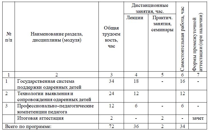 В программе курса рассматриваются основные современные концепции одаренности, особенности выявления и диагностики, содержание индивидуальной работы одаренными детьми.