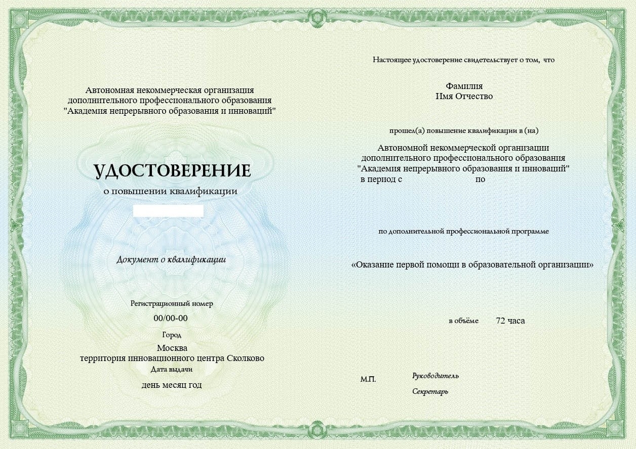 АИПК-801.9 Оказание первой помощи в образовательной организации, 72 ч