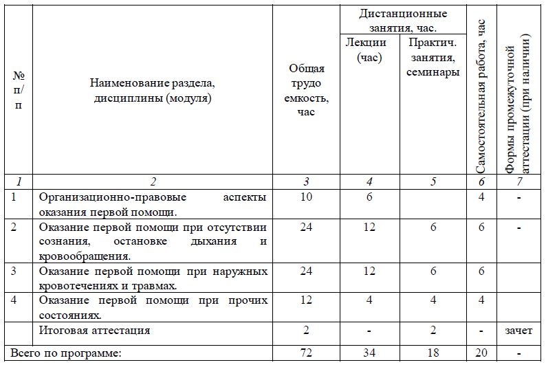 Цель программы: формирование и совершенствование компетенций педагогов, а также специалистов (сотрудников) других сфер деятельности в области оказания первой (доврачебной) помощи.