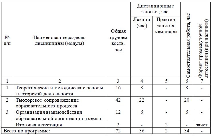 Цель программы повышения квалификации – совершенствование профессиональных компетенций педагогических работников, обеспечивающих соответствие их квалификации новым условиям профессиональной деятельности, связанным с осуществлением тьюторского сопровождения обучающихся в условиях реализации ФГОС.