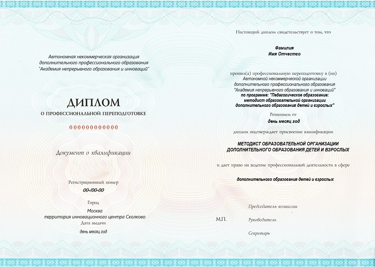 АИПП-301К Педагогическое образование: методист образовательной организации дополнительного образования детей и взрослых (с присвоением квалификации «Методист образовательной организации дополнительного образования детей и взрослых»), 560 ч.