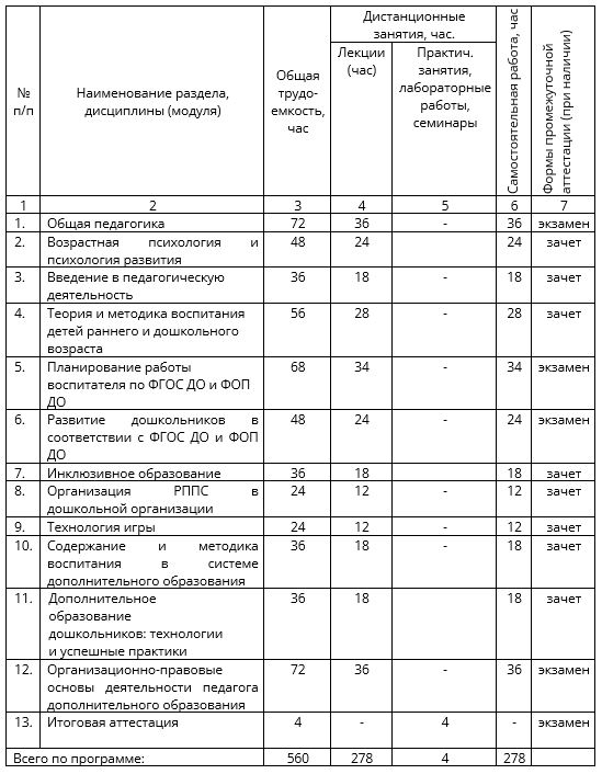 Программа необходима слушателям, желающим освоить специальность воспитателя и педагога дополнительного образования детей и взрослых.