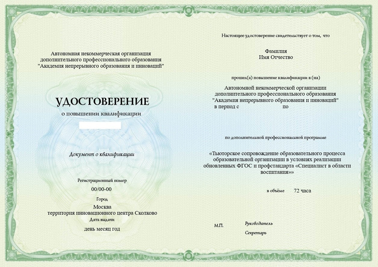АИПК-207.6 Тьюторское сопровождение образовательного процесса образовательной организации в условиях реализации обновленных ФГОС и профстандарта «Специалист в области воспитания», 72 ч.