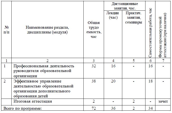 Цель реализации программы – совершенствование профессиональных компетенций слушателей по управлению развитием и обеспечению эффективной деятельности образовательной организации дополнительного образования