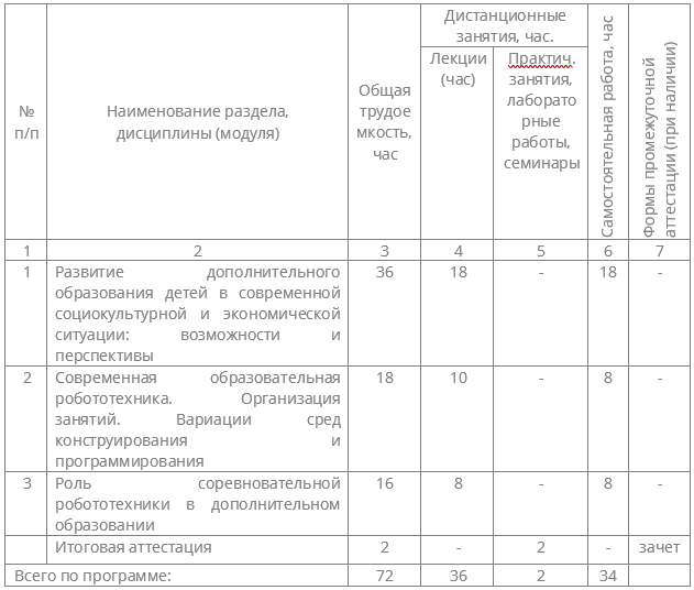 Образовательная робототехника как средство формирования инженерной культуры и технического мышления в условиях дополнительного образования (конструирование на основе набора Lego Mindstorms), 72 ч.