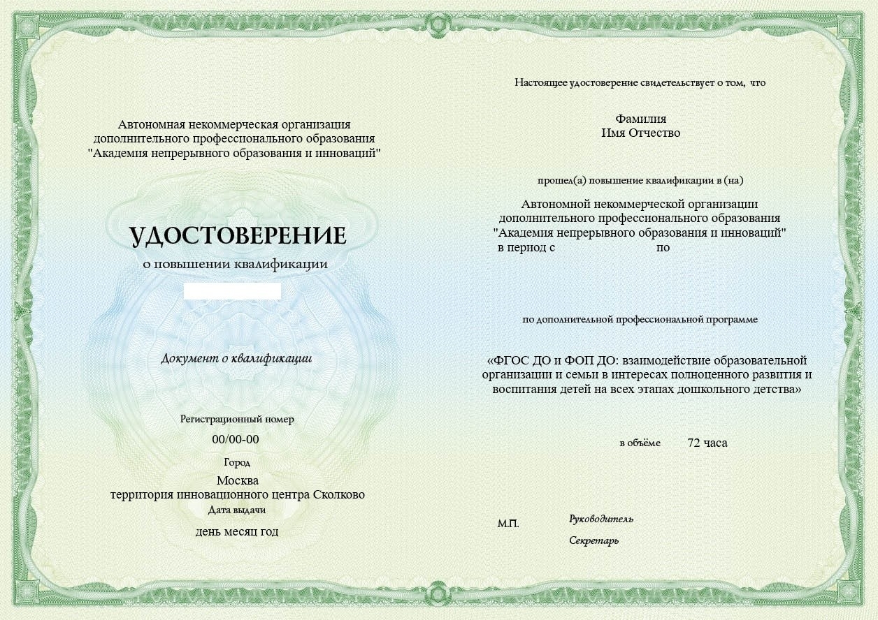 АИПК-108.2 ФГОС ДО и ФОП ДО: взаимодействие образовательной организации и семьи в интересах полноценного развития и воспитания детей на всех этапах дошкольного детства, 72 ч.