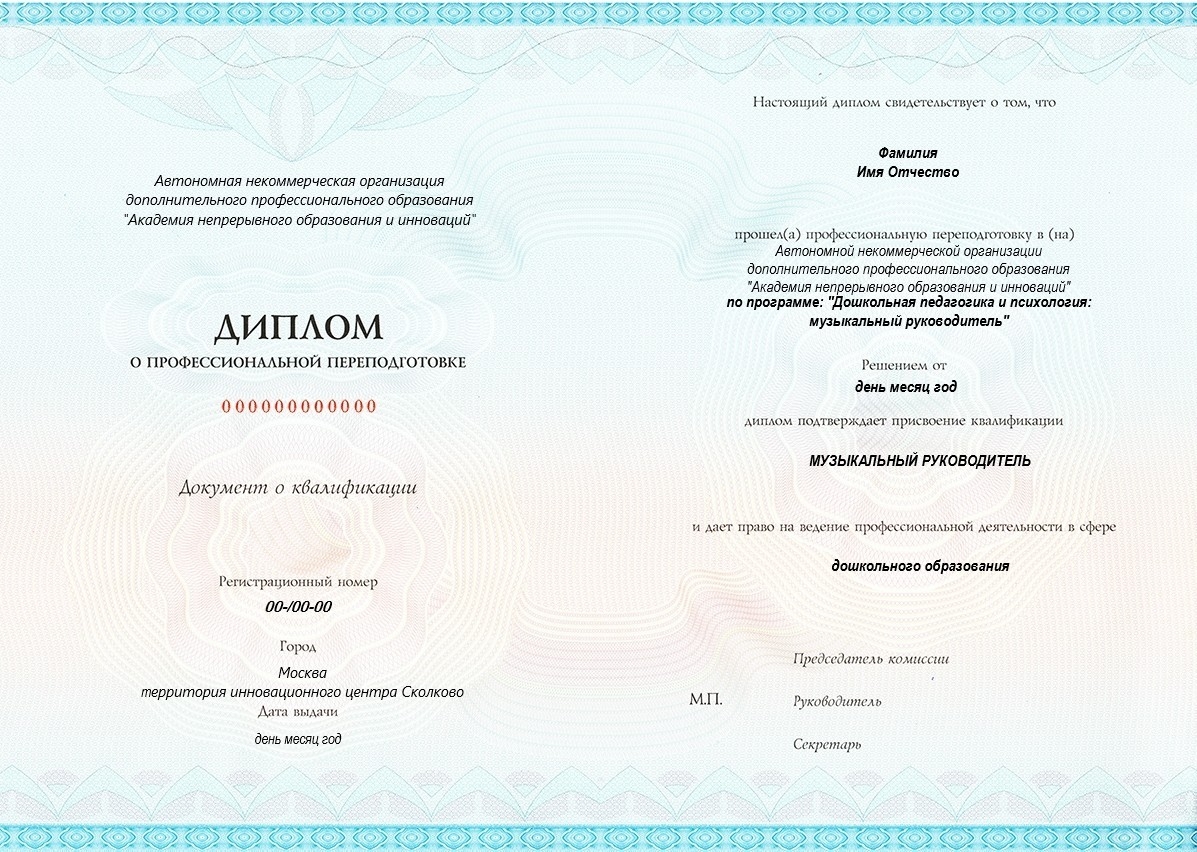 АИПП-105К Дошкольная педагогика и психология: музыкальный руководитель (с присвоением квалификации «Музыкальный руководитель»), 526 ч.