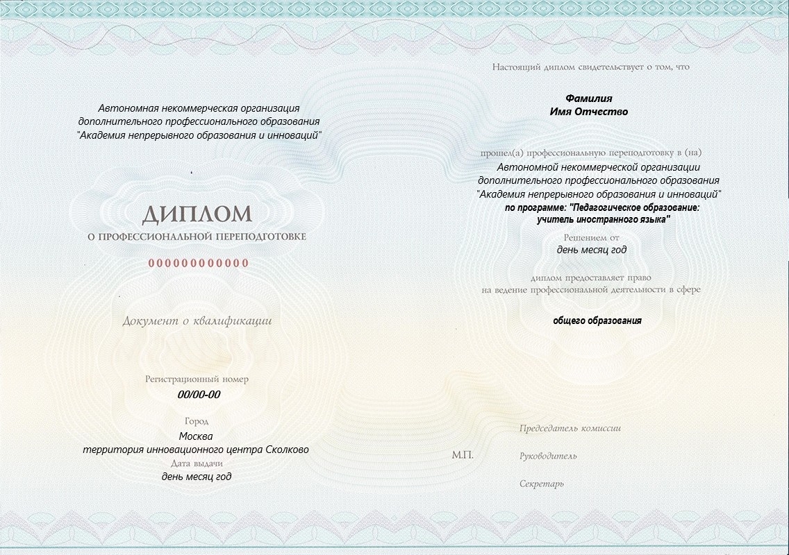 Программа профессиональной переподготовки разработана на основе профессионального стандарта «Педагог (педагогическая деятельность в дошкольном, начальном общем, основном общем, среднем общем образовании) (воспитатель, учитель)» и направлена на получение компетенций, необходимых для выполнения профессиональной деятельности иностранного языка.
