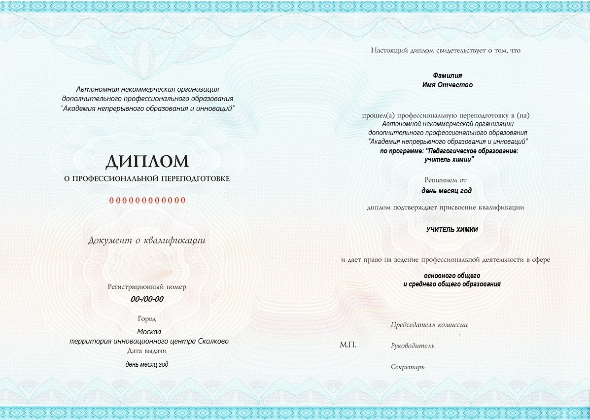 Программа профессиональной переподготовки разработана на основе профессионального стандарта «Педагог (педагогическая деятельность в дошкольном, начальном общем, основном общем, среднем общем образовании) (воспитатель, учитель)» и направлена на получение компетенций, необходимых для выполнения профессиональной деятельности учителя химии.