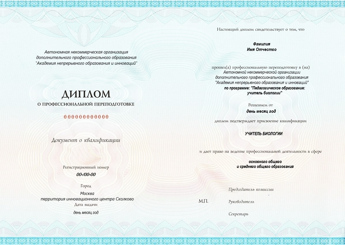 Программа профессиональной переподготовки разработана на основе профессионального стандарта «Педагог (педагогическая деятельность в дошкольном, начальном общем, основном общем, среднем общем образовании) (воспитатель, учитель)» и направлена на получение компетенций, необходимых для выполнения профессиональной деятельности учителя биологии.